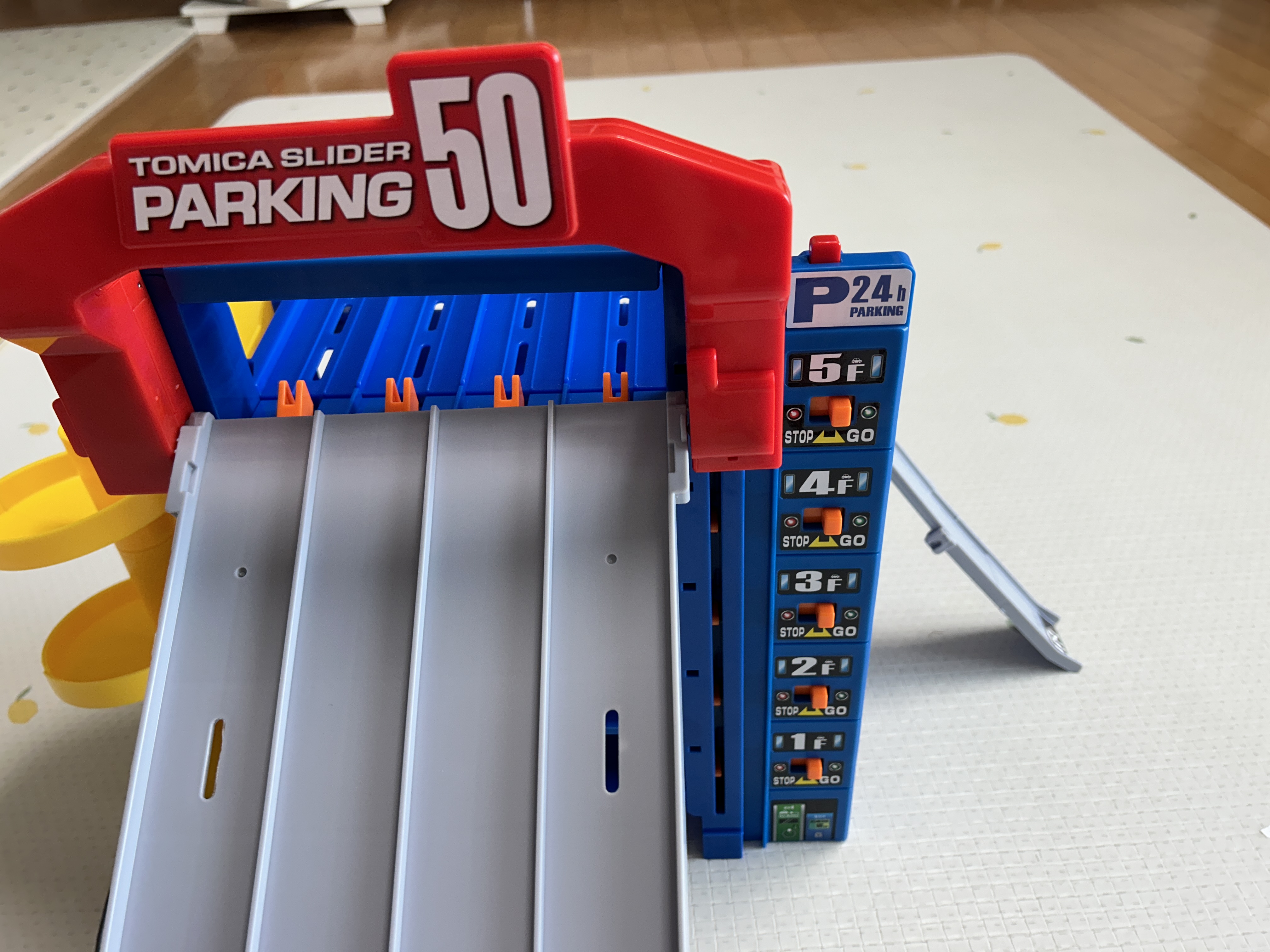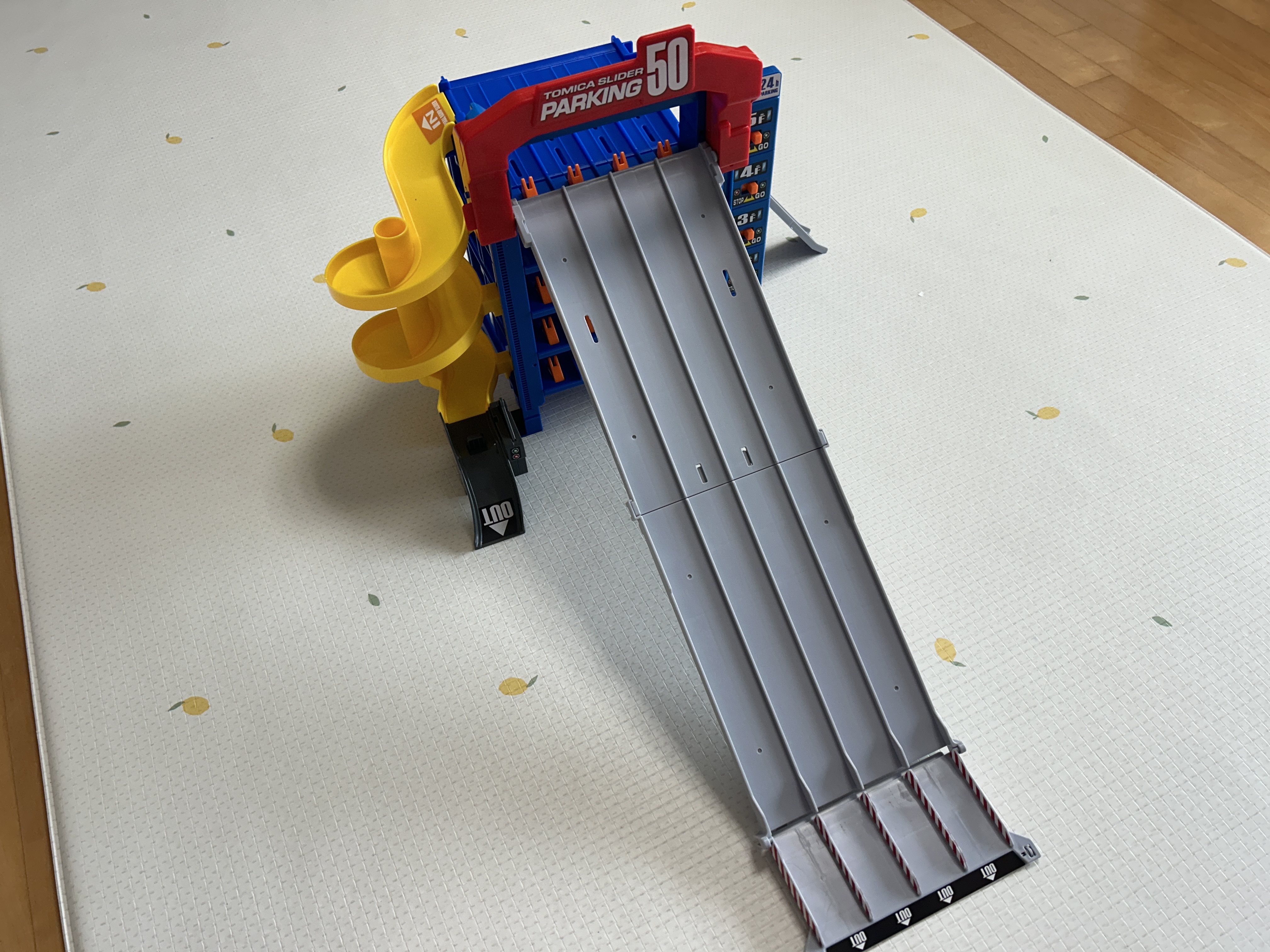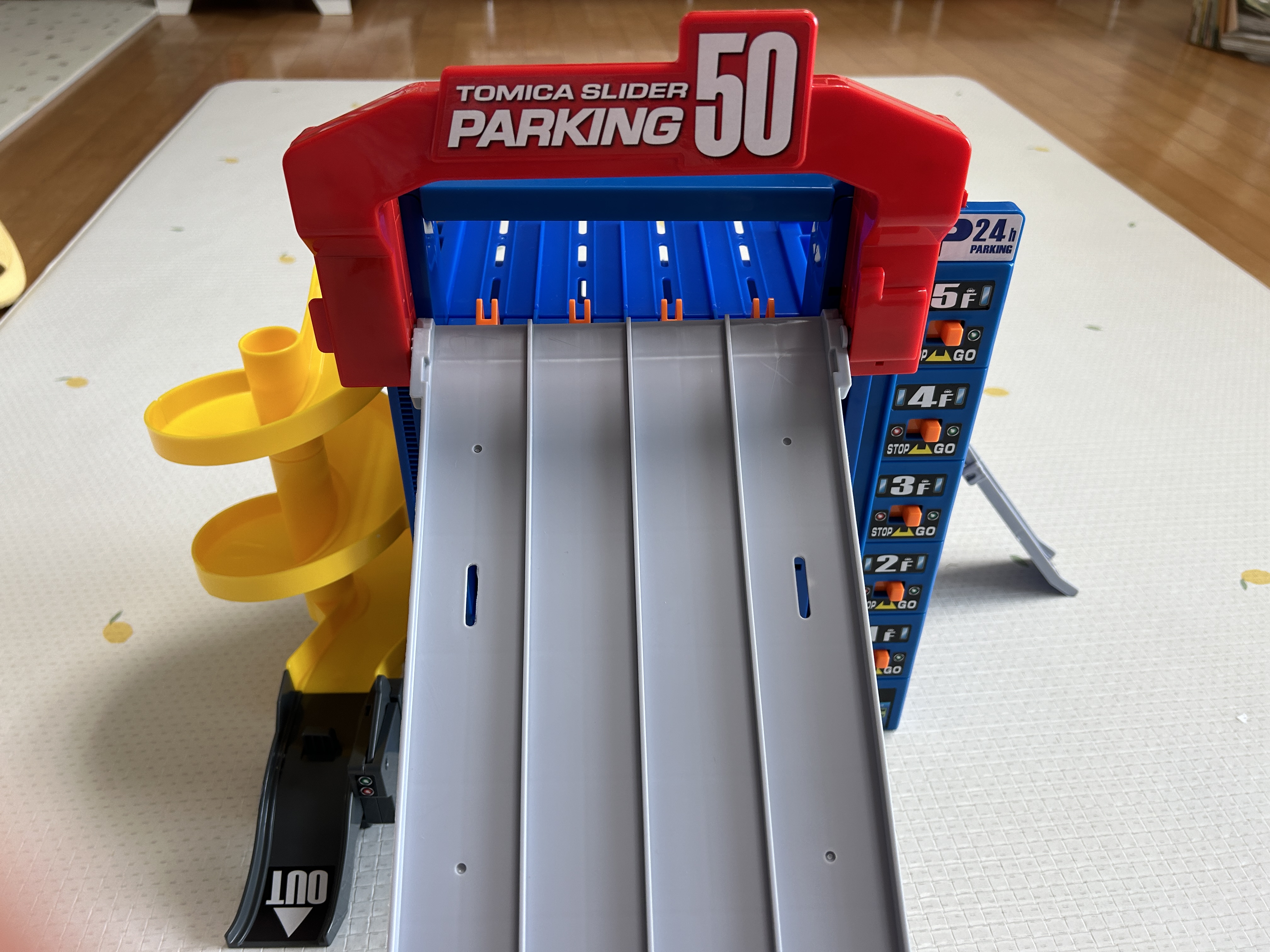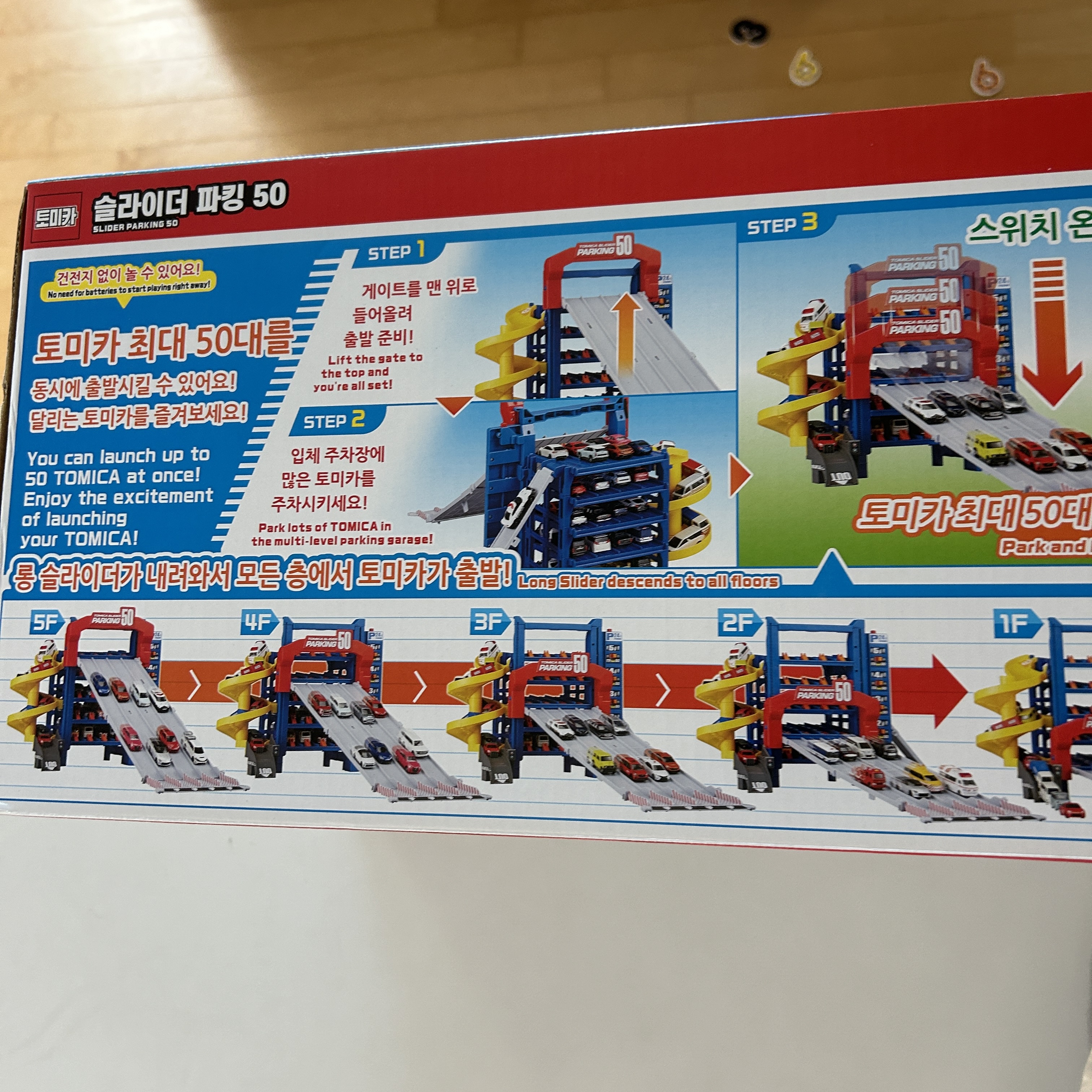 5층부터 씽씽 내려오는 토미카들을 보면 엄마도 은근(?) 재미있다. 50대를 주차시켜서 정리해 놓는 용도도 기대했지만, 그건 아이에게 기대하지 않는게 좋다. 절대 주차장에 정리를 해놓지는 않는다. 그냥 자동차들 박스에 넣는 걸로 만족하기로 했다.
