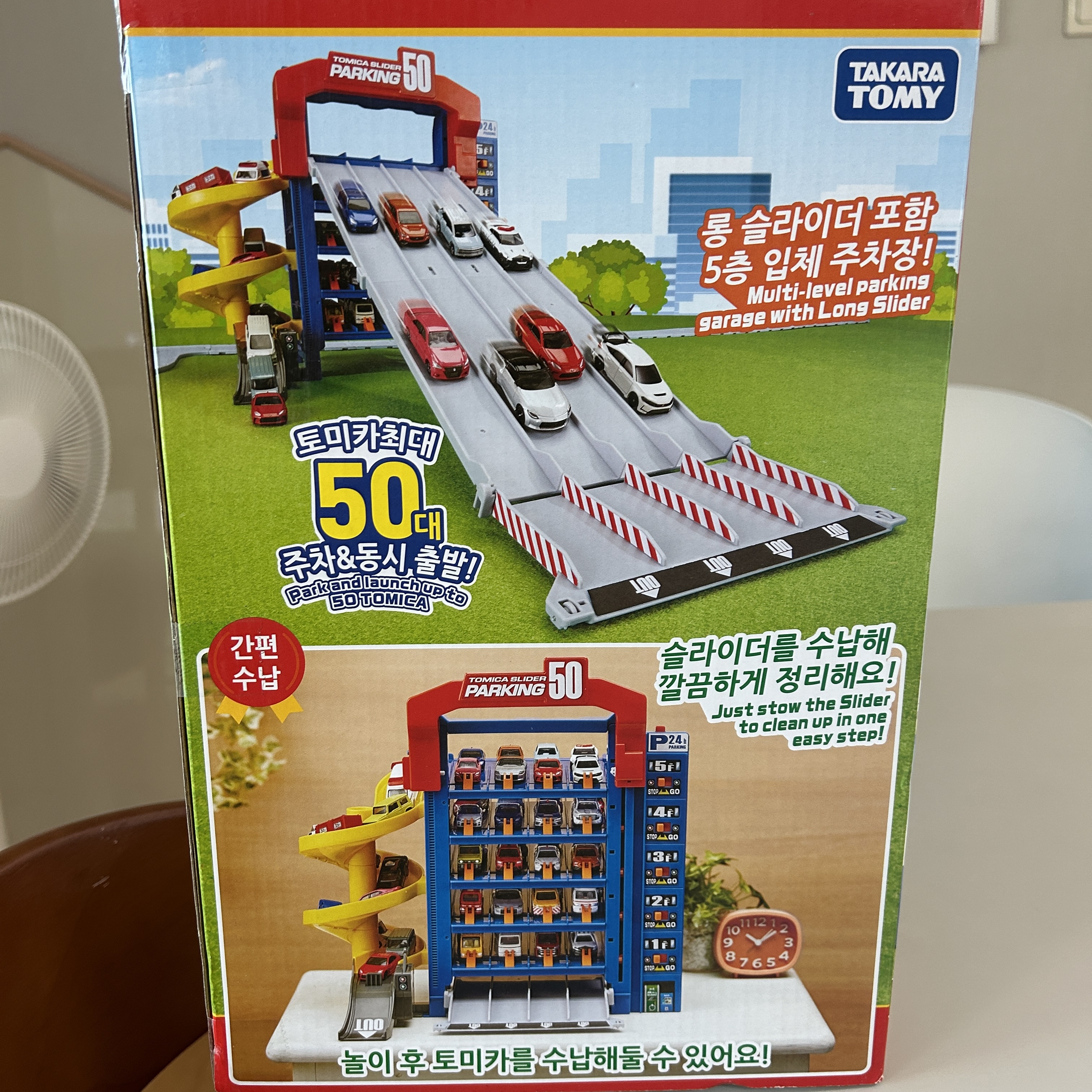 앵그리 만 4세 생일선물로 당첨된 [토미카 슬라이더 파킹 50] 장난감이 우리집에 새로 들어왔다. 아이가 토이저러스 장난감 가게에서 구경하다가 약간 관심있어 보이길래 생일 선물로 정하게 되었다. 마침 우리 집에는 물려받은 토미카 자동차들이 꽤 많아서 잘 가지고 놀 수 있을 것 같았다.